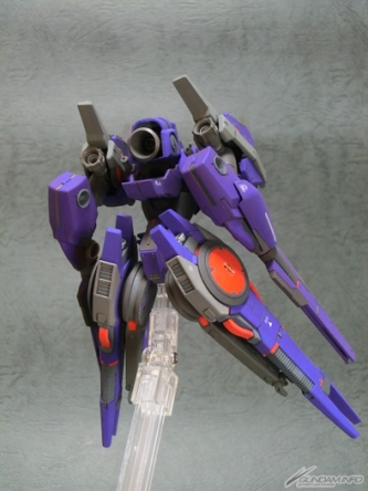 アルティメスパーツの使い方が独創的なのに綺麗にまとまっていて面白いですね。塗装も紫をベースに赤やグレーの差し色が綺麗です。他作品からのキットを上手く流用してる事を感じさせない手腕もお見事。トリッキーなアクションをしそうなMSですがもう一ひねりすれば正統派の変形MSにも出来そうな感じですね。(海老川兼武氏)