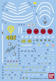その二つ名に相応しい印象的なカラーリングを成形色で忠実に再現するほか、シールド部などの特徴的なマーキングを再現できる水転写式の専用マーキングデカールが付属する。