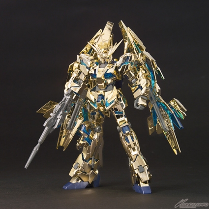 本アイテムは、ガンダムフロント東京のオフィシャルショップで好評発売中の限定ガンプラ「HGUC 1/144 ユニコーンガンダム3号機 フェネクス(デストロイモード)Ver.GFT」に、装いも新たに全身ゴールドメッキが施された特別仕様のもの。