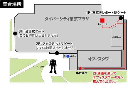 ダイバーシティ東京 プラザ2階オフィスタワー横の集合場所にお集まりください。