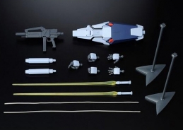 さらに、2基付属する対艦ミサイルは、パーツの差し替えによりバックパックへの装着が可能。そのほか射出した前腕部を保持する専用スタンドやリード線が付属し、前腕部射出シーンを再現することもできる。