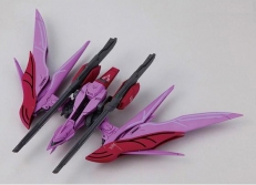 「MG 1/100 デスティニーインパルスガンダムR(リジェネス)」は、新規造形の大型バックパック「デスティニーRシルエット」を装備し、モノアイのある機首をもつ中央部などを徹底再現。伸縮展開機構を採用したウイング部分は左右に大きく展開することができる。