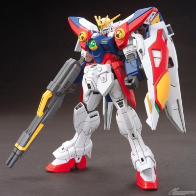 『新機動戦記ガンダムW』より、主人公ヒイロ・ユイの乗機「ウイングガンダムゼロ」がHGシリーズで登場。差し替えによりネオバード形態へ変形可能なほか、ツインバスターライフルには連結、分離ギミックが搭載されている。