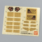 随所にメッキ加工が多用されているほか、グロスインジェクションやガンメタ成形などで豪華な質感が徹底追及されている。さらに、今石画伯デザインの特殊素材「和シール」が付属し、吹返や胸板、鎧の各所に貼ることでプレミアム感を演出することができる。