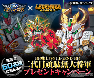 キャンペーンは、ゲーム内で手に入るシリアルコードをガンダムゲーム公式ポータルサイト「ガンダムパーフェクトゲームス」で入力してアンケートに答えると、抽選で50名に「BB戦士 LEGEND BB 二代目頑駄無大将軍」がプレゼントされるというもの。
