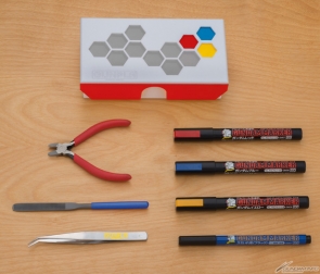 「トライファイターズツールセット」は、「バーニングニッパー」、「ライトニングヤスリ」、「ウイニングピンセット」をはじめとする各種ガンプラ製作ツールが、特製ケースに収納されたセット。