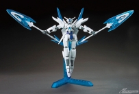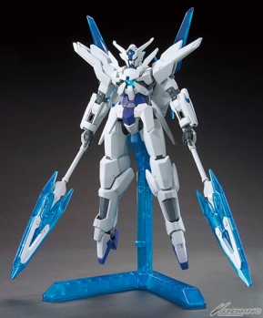 GNパルチザンやバックパックなど、各部にクリアパーツが使用されている。また、先端に可動軸を搭載した台座が付属し、印象的な浮遊状態でのディスプレイが可能。