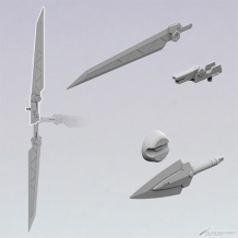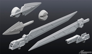 前腕部にも装着可能な大型ソードに加え、小刀、装備用基部も付属。様々なタイプの実体剣で武装を強化しよう。