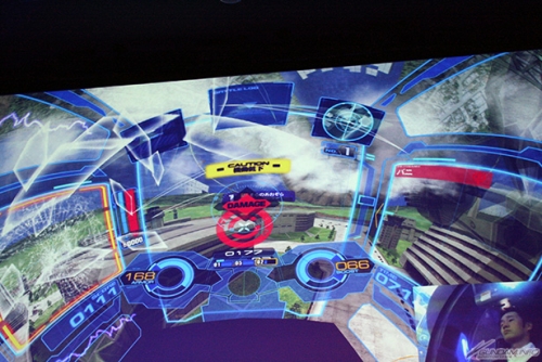 ▲一方のノブ氏、タイスケ氏、カズマ氏のチーム「GUNPLA BOYS」は、「ZAKU II type THE SUN」、「ZAKU II type GAIA」、「ZAKU II type THE OCEAN」というザクぞろいの対照的な編成。セットしたガンプラがスキャンされると、CG化された機体が画面に映し出される。