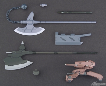 『機動戦士ガンダム 鉄血のオルフェンズ』より、近接武器とモビルワーカーがセットになったウェポンセットの第3弾が登場。差替えにより展開/収納状態を再現できる「ハルバード」、「HG ガンダムグシオン」に最適な「グシオンチョッパー」と「グシオンアックス」といった近接武器を収録。第1話でCGSを襲撃したシーンが印象的な、ギャラルホルン所有のモビルワーカーも付属する。
