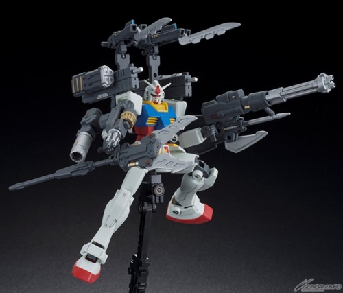 ▲「HGUC RX-78-2 ガンダム」に限定ウェポンパーツA、B、C、D、Gを1セットずつ、E、F、Hを2セットずつ装着した状態。複数装備させてバリエーションを楽しむことも可能。