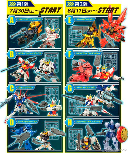 キャンペーンは、店頭にて対象HGシリーズのガンプラを1個購入するごとに、限定ウェポンパーツ8種のうち1種がその場でもらえるというもの。7月30日(土)からの第1弾では「ガトリングロングライフル」など4種の限定ウェポンパーツが、8月11日(木・祝)からの第2弾では「ブレードビームガン」など4種がプレゼントされる。限定ウェポンパーツには多彩なジョイントパーツが付属し、好きなガンプラに装備させて、自由にカスタマイズを楽しむことができる。