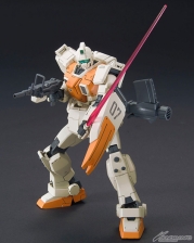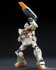 『機動戦士ガンダム 第08MS小隊』より、「陸戦型ジム」がファン待望の初HGUC化!同じく初立体化のネット・ガンをはじめ、ロケット・ランチャー、100mmマシンガンといった豊富な武装と、バイポッド展開ギミックを搭載したシールドも付属!肩部は前後可動機構を備え、迫力の射撃ポーズを実現可能!
