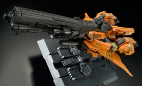 さらに、特徴的な表面ディテールもモールドで再現されるほか、印象的な迷彩模様を再現するための専用カラーリングシール、パイロット「グレイ・ウルフ」のパーソナルマークやコーションマークを収録したスライドマーク、カタパルトをイメージした専用スタンドが付属。なお、専用スタンドはMS形態・ウェイブライダー形態の両方をディスプレイでき、発進時や空中飛行する躍動感あるポージングも可能となっている。