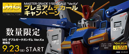 「MG 1/100 ダブルゼータガンダムVer.Ka」の発売を記念して、9月23日(土)より「プレミアムデカールキャンペーン」がスタートする。