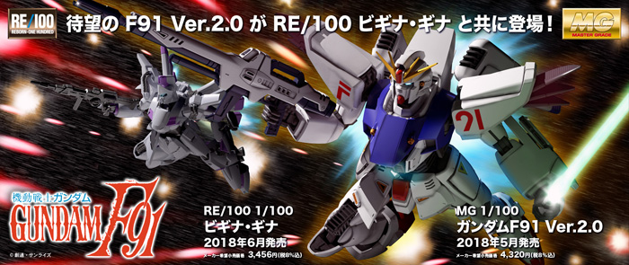 バンダイ ホビー事業部より「MG ガンダムF91 Ver.2.0」が5月に、「RE/100 ビギナ・ギナ」が6月に発売されることが決定した。