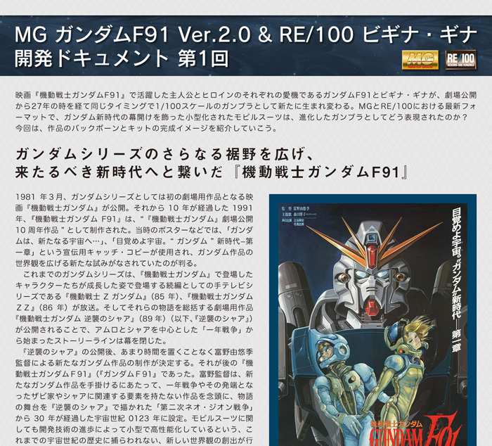 バンダイホビーサイトでは「MG ガンダムF91 Ver.2.0&RE/100 ビギナ・ギナ開発ドキュメント」の第1回が公開された。