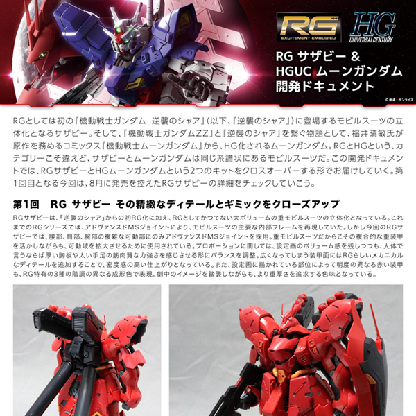 バンダイホビーサイトでは「RG サザビー&HGUC ムーンガンダム 開発ドキュメント」の第1回が公開された。