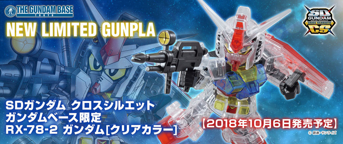 ガンプラ総合施設「THE GUNDAM BASE TOKYO(ガンダムベース東京)」では、ガンダムベース東京限定ガンプラ「SDガンダム クロスシルエット ガンダムベース限定 RX-78-2 ガンダム[クリアカラー]」が、本日10月6日(土)より発売される。価格は864円(税込)。