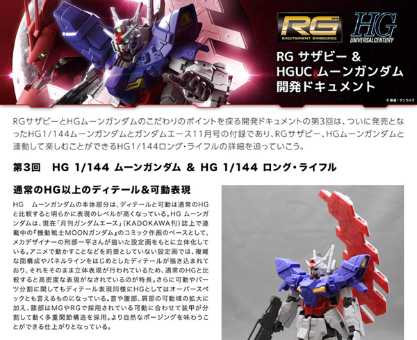 第3回では、好評発売中の「HGUC ムーンガンダム」と、ガンダムエース11月号の付録である「HG ロング・ライフル」が詳しく紹介されている。ぜひともチェックしてみよう。