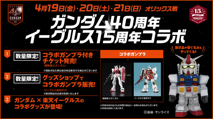 楽天イーグルスにて「HG ガンダム イーグルスver.」付き観戦チケット、2/25一般発売!