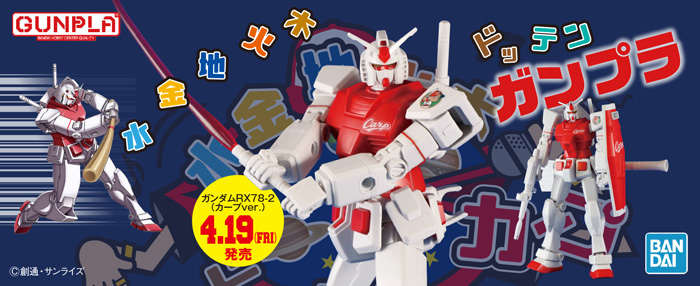 「機動戦士ガンダム40周年プロジェクト」と広島東洋カープがコラボレーションした「HG ガンダム カープVer.」が、4月19日(金)より、オフィシャルグッズショップと球場グッズショップにて発売されることが決定した。