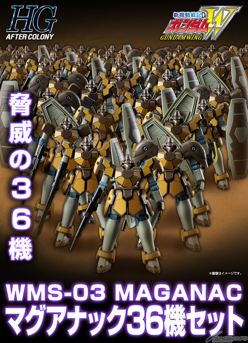 「HG マグアナック 36機セット」は、『新機動戦記ガンダムW』に登場する「マグアナック」の36機セット。“Fine Build”(簡単組立)がコンセプトの「HG マグアナック」をべースに、新規造形の肩パーツやバックパックなど様々な追加パーツを同梱し、自由自在に組み合わせ可能。さらに、ナンバリング水転写式デカールも付属する。