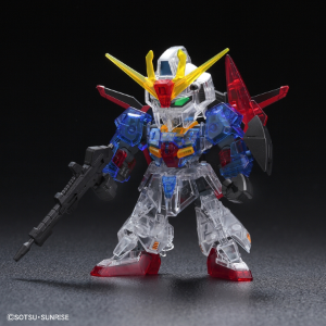 「HGBD ガンダムダブルオースカイ」がクリアカラーになって登場。GNドライヴにデスティニーのウイングユニットを組み込んだ本機独自の装備「スカイドライヴユニット」の形状を再現。ビームライフル、ビームサーベル、バスターソード、ロングライフルなど多彩な武装が付属し、バスターソードとロングライフルはスカイドライヴユニットに懸架させることが可能。広い可動域で、劇中同様に迫力あるアクションポーズを楽しめる。