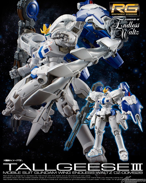 『新機動戦記ガンダムW Endless Waltz』より、火消しの風“プリベンター・ウインド”ことゼクス・マーキスが駆る「トールギスIII」が、フェイスや各武装を新規造形を交えRGシリーズで立体化。3本角を有するフェイス部、大型化した肩部など特徴的な外装を新規造形で再現。メガキャノンは展開ギミックが搭載され、ヒートロッドはリード線とボールジョイントによりフレキシブルに可動。差し替え式でシールドへの格納状態を再現できる。また、ゼクス・マーキスの新規造形フィギュアが付属する。