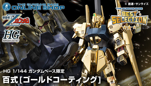 公式ガンプラ総合施設「ガンダムベース」の限定ガンプラ「HG ガンダムベース限定 百式[ゴールドコーティング]」が、”ベストセレクション”としてガンダムベースオンラインショップに登場。