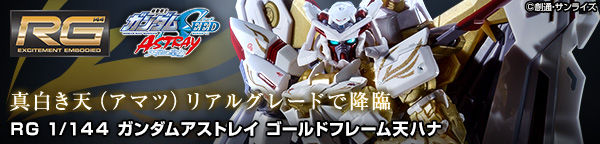 月刊「ガンダムエース」掲載コミック「機動戦士ガンダムSEED ASTRAY 天空の皇女」より、純白に彩られた「ガンダムアストレイゴールドフレーム天(アマツ)ハナ」が、リアルグレードアレンジで立体化。