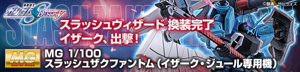 『機動戦士ガンダムSEED DESTINY』より、イザーク・ジュールが駆るスラッシュウィザードを装備した「スラッシュザクファントム」がマスターグレードで登場。