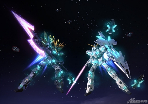▲ユニコーンガンダムとバンシィ・ノルンは本編と一味違う装備で登場!