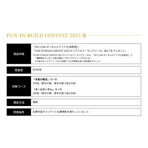 賞品内容:「HG 1/144 ガンダムエアリアル(改修型)」+「FUN TO BUILD CONTEST 2023 オリジナルマーキングシール」各1つをプレゼント。