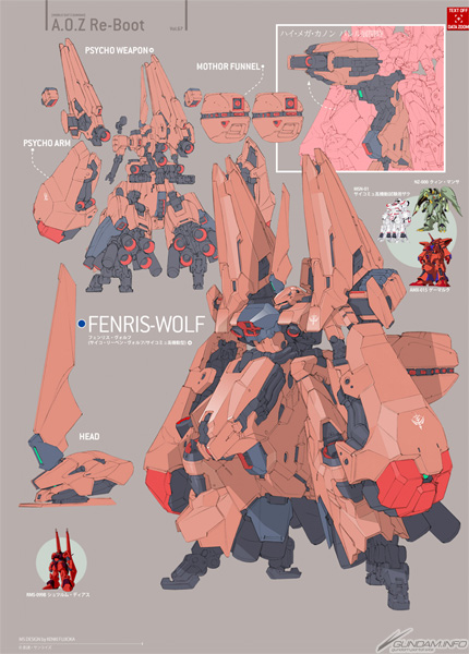 「フェンリス・ヴォルフ」は、強化人間の搭乗を前提したリーベン・ヴォルフのサイコミュ搭載仕様で、チェスター艦隊とともに火星へと赴いたムンスキーが持ち込んだMS。ムンスキーが秘蔵するPP(パワーサイコ)部隊が運用し、フォボス宇宙港攻略戦の終盤に投入された。