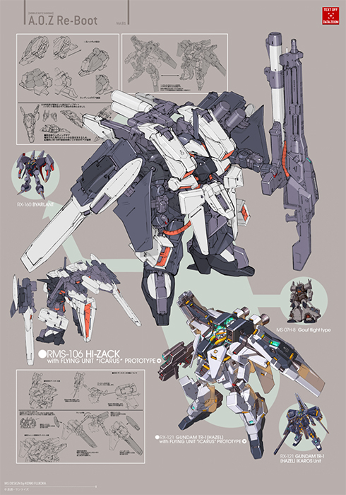 電撃ホビーウェブの連載企画「A.O.Z Re-Boot」が更新され、「Vol.81 RMS-106 ハイザック・イカロス・ユニット試作プラン」が登場した。