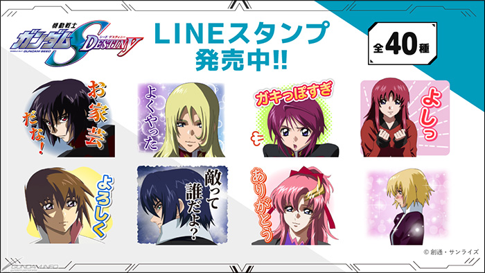 『機動戦士ガンダムSEED DESTINY』のLINEスタンプが、本日10月26日(木)に、コミュニケーションアプリ「LINE」内スタンプショップにて発売された。価格は1セットあたり100コイン(Android端末、iOS端末のみ)、もしくは250円(税込)。