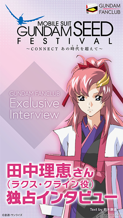 公式アプリ「ガンダムファンクラブ」(GFC)にて、「ガンダムSEEDシリーズ」ラクス・クライン役の田中理恵さんへの独占インタビューが公開された。