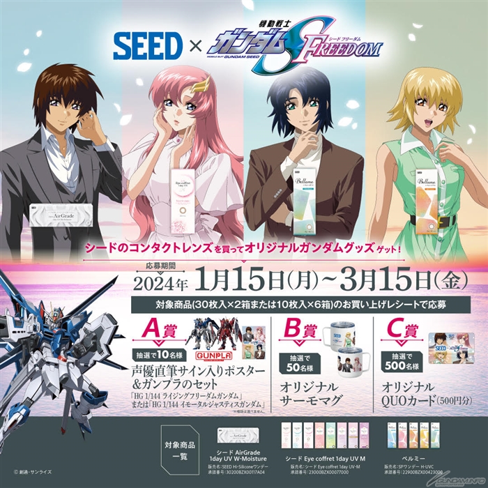 コンタクトレンズの「SEED」と『機動戦士ガンダムSEED FREEDOM』のコラボキャンペーンが、1月15日(月)より開催されることが決定した。