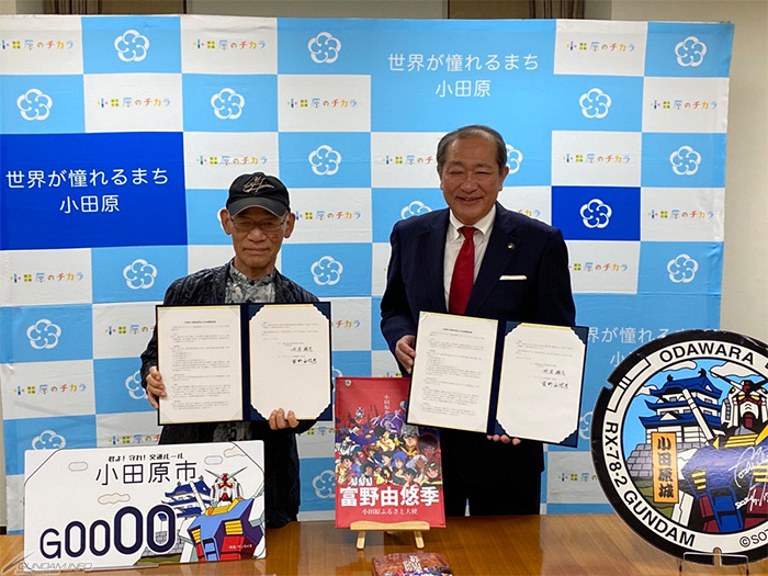 小田原市と同市出身で小田原ふるさと大使の富野由悠季監督は、4月10日(水)に包括連携協定を締結した。