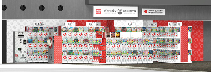 本店舗にはカプセルトイ自販機を230面設置しガシャポン新アイテムをすべて取り揃えるほか、ここでしか味わえないガシャポン体験を提供して、ガシャポンの新たな魅力を発信していく。