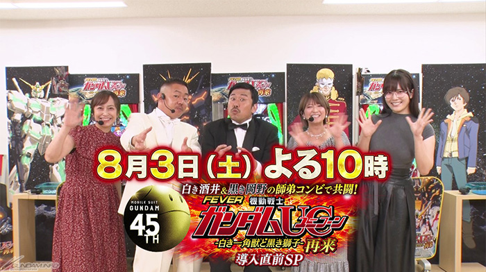 CSスポーツチャンネル「スカイA」にて、『ガンダム45周年特別企画 白き酒井&黒き岡野の師弟コンビで共闘!フィーバー機動戦士ガンダムユニコーン 再来 導入直前SP』の放送が決定した。初回放送は8月3日(土)22:00から。