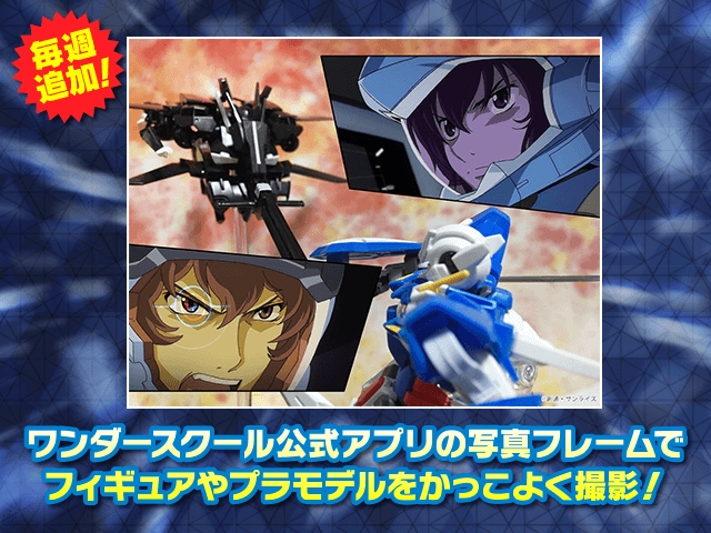 バンダイによる無料で動画やコンテストが楽しめる投稿サイト「WONDER!SCHOOL(ワンダースクール)」公式アプリでは、写真フレーム「カットイン(刹那&グラハム)」が新たに追加された。