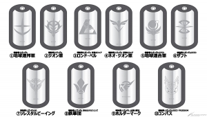 エンブレムは、ガンダムシリーズの劇中に登場するものの中から厳選された全10種より選択可能。名前と会員番号、そしてエンブレムの組み合わせで世界にひとつ、自分だけのドッグタグを作ることができる。