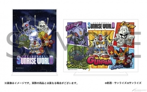 また、物販コーナーにて商品を購⼊すると、「バンダイナムコ Fan Fun Spot」アプリで抽選可能な応募券を1枚配布。応募した人の中から抽選で毎月最大10名に、「サンライズロボット30体⼤集合描き下ろしビジュアル」の中からロボット1体の線画イラストを使⽤したカード6枚セット(全5種・ランダム)が当たります。