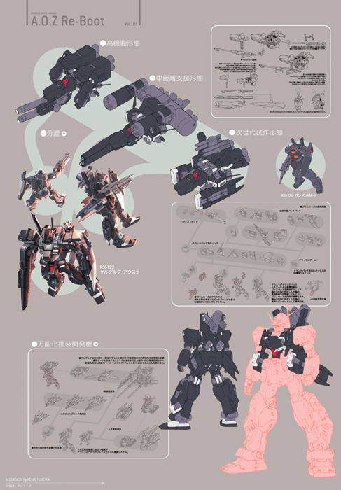 「A.O.Z Re-Boot」は、藤岡建機氏のコミック「A.O.Z Re-Boot ガンダム・インレ -くろうさぎのみた夢-」と連動した描き下ろしイラスト連載。