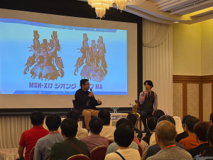 泣く泣くドムの足を切って、ジオングに取り付けた渾身のガンプラの写真も送ったそうだが、「どれも一度も採用されなかったんですけどね……」とほろ苦い思い出を語り、会場の笑いを誘っていた。しかし同時に、その場にいた多くのガンダムファンの共感も得たに違いない。