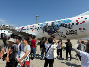 ガンダムパビリオン映像秘話を堪能した後、ガンダムジェットへの機体を胸に搭乗口へと向かっていった。