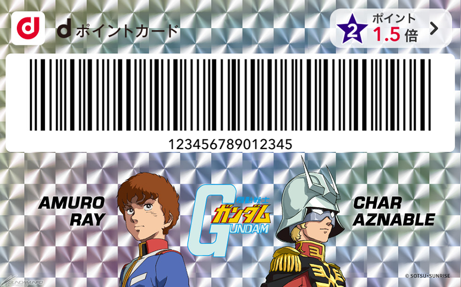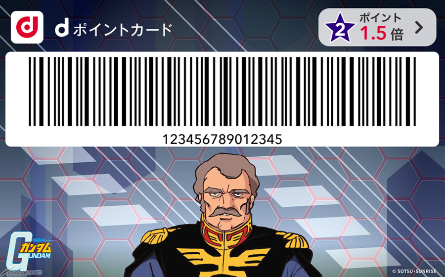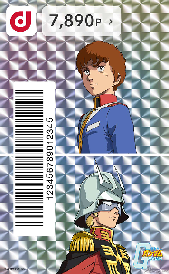 スペシャルデザインは10月1日(水)から11月30日(日)の期間中、モバイルdポイントカードのきせかえをガンダムシリーズのデザインのいずれかに設定して、dポイントがたまる・つかえるお店で200ポイント以上ためると獲得が可能となっている。