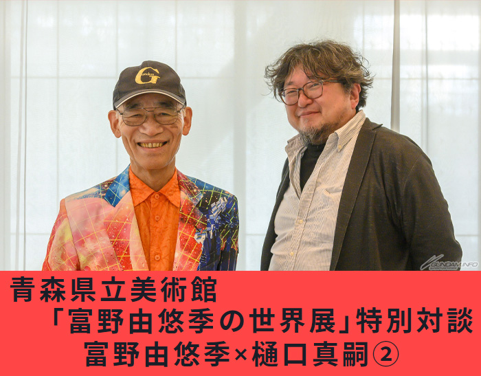 記事は、本展示会の第6会場「青森県立美術館」で企画された、実写映画の特撮監督としても知られる樋口真嗣氏と富野由悠季監督による特別対談をレポート。